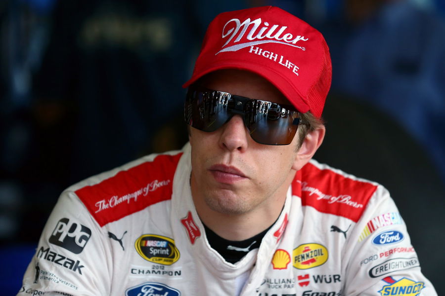DARLINGTON, SC – SEPTEMBER 04: Brad Keselowski, driver of the #2 Miller High Life Ford, sits in the garage area during practice for the NASCAR Sprint Cup Series Bojangles’ Southern 500 at Darlington Raceway on September 4, 2015 in Darlington, South Carolina. (Photo by Sarah Crabill/NASCAR via Getty Images)