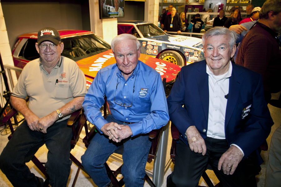 Image number 09509361 date 21 01 2012 Copyright imago Icon Smi Jan 21 2012 Donnie Allison l Cale Yarborough m & Bobby Allison r Chat about their Fight AT Daytona 500 in 1979 during The Nascar motor aviation USA Hall of Fame Weekend behind Them are The 2 Cars From that Race Nascar motor aviation USA Jan 21 Hall of Fame Weekend PUBLICATIONxINxGERxSUIxAUTxHUNxRUSxSWExNORxONLY x0x 2012 horizontal