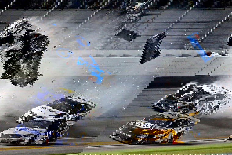 Newman, driving his No. 6 Ford, had a collision with Ryan Blaney that sent Newman crashing into the wall, followed by another collision with an approaching car.