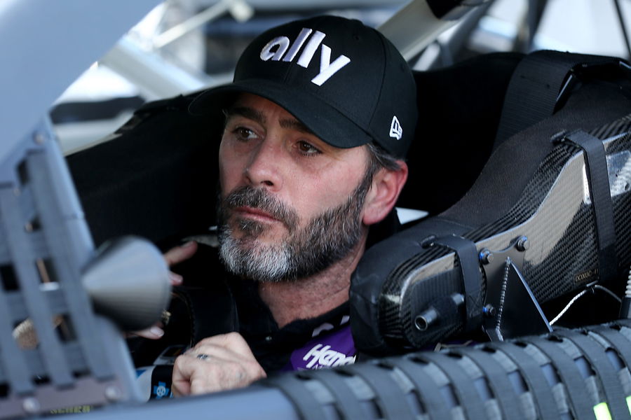 KANSAS CITY, KANSAS – JULY 23: Jimmie Johnson, driver of the #48 Ally Chevrolet, sit in his car prior to the NASCAR Cup Series Super Start Batteries 400 Presented by O’Reilly Auto Parts at Kansas Speedway on July 23, 2020 in Kansas City, Kansas. (Photo by Jamie Squire/Getty Images)
