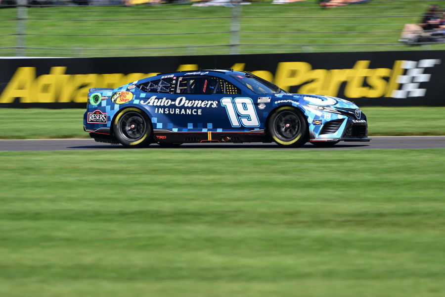 Aug 12, 2023; Speedway, Indiana, USA; Martin Truex Jr. (19) drives during practice and qualifying at the Indianapolis Motor Speedway Road Course. Mandatory Credit: Marc Lebryk-USA TODAY Sports
