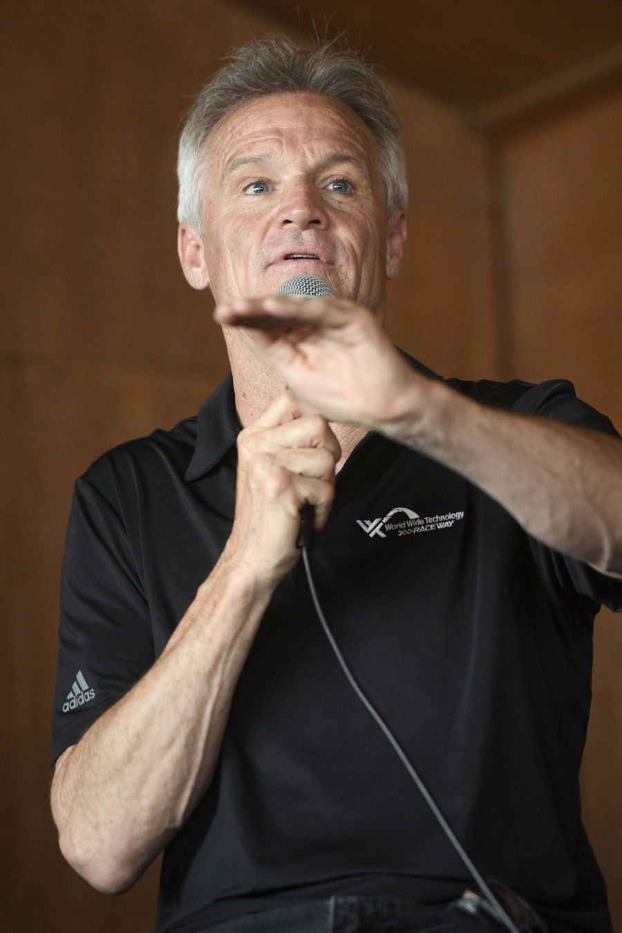 MADISON, IL – JUNE 02: Former NASCAR, Motorsport, USA driver Kenny Wallace speaks during the Lunch with Legends for the NASCAR Cup Series Enjoy Illinois 300 on June 2, 2023, at Madison in World Wide Technology Raceway at Gateway, Illinois. Photo by Michael Allio/Icon Sportswire AUTO: JUN 02 NASCAR Cup Series Enjoy Illinois 300 EDITORIAL USE ONLY Icon116230602012300