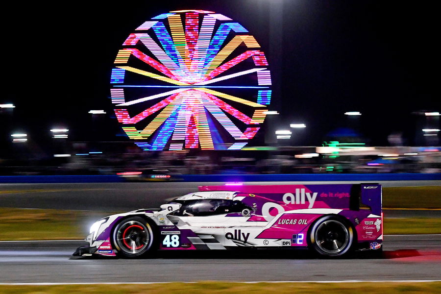 Jan 30, 2021; Daytona Beach, FL, USA; IMSA Series driving team of Jimmie Johnson, Kamui Kobayashi, Simon Pagenaud and Mike Rockenfeller (48) during the Rolex 24 at Daytona International Speedway. Mandatory Credit: Jasen Vinlove-USA TODAY Sports TPX IMAGES OF THE DAY