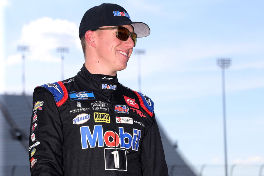 LEBANON, TENNESSEE – JUNE 24: John Hunter Nemechek, driver of the #4 Mobil 1 Toyota, looks on during qualifying for the NASCAR Camping World Truck Series Rackley Roofing 200 at Nashville Superspeedway on June 24, 2022 in Lebanon, Tennessee. (Photo by Meg Oliphant/Getty Images)