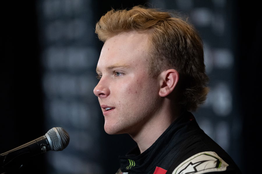 CHARLOTTE, NORTH CAROLINA – SEPTEMBER 04: Ty Gibbs speaks with the media during NASCAR Cup Series Playoff Media Day at the Charlotte Convention Center on September 04, 2024 in Charlotte, North Carolina. (Photo by Jacob Kupferman/Getty Images)