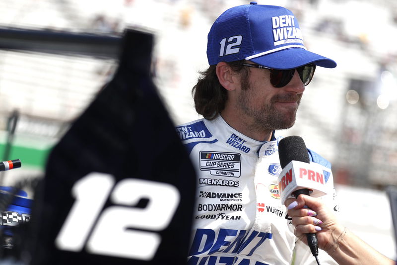 Feb 15, 2024; Daytona Beach, Florida, USA; NASCAR Cup Series driver Joey Logano (22) before the start of the Bluegreen Vacations Duel 1 at Daytona International Speedway. Mandatory Credit: Peter Casey-USA TODAY Sports