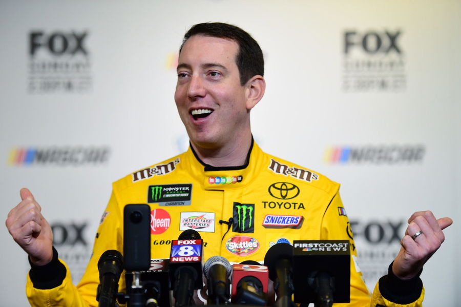 DAYTONA BEACH, FLORIDA – FEBRUARY 13: NASCAR driver Kyle Busch speaks with the media during the Monster Energy NASCAR Cup Series 61st Annual Daytona 500 Media Day at Daytona International Speedway on February 13, 2019 in Daytona Beach, Florida. (Photo by Jared C. Tilton/Getty Images)
