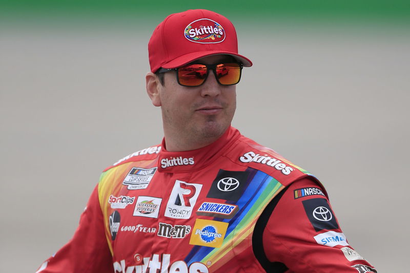 DARLINGTON, SOUTH CAROLINA – SEPTEMBER 04: Kyle Busch, driver of the #18 M&M’s Toyota, walks onstage during driver intros prior to the NASCAR Cup Series Cook Out Southern 500 at Darlington Raceway on September 04, 2022 in Darlington, South Carolina. (Photo by Logan Riely/Getty Images)