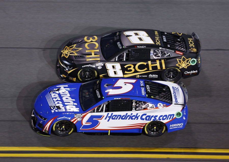 NASCAR, Motorsport, USA Bluegreen Vacations Duel 2 at DAYTONA Feb 16, 2023 Daytona Beach, Florida, USA NASCAR Cup Series driver Kyle Larson 5 and driver Kyle Busch 8 race side by side during Duel 2 at Daytona International Speedway. Daytona Beach Daytona International Speedway Florida USA, EDITORIAL USE ONLY PUBLICATIONxINxGERxSUIxAUTxONLY Copyright: xMikexDinovox 20230216_mcd_ad4_25