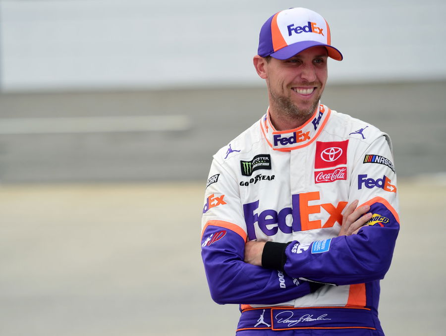 MARTINSVILLE, VIRGINIA – OCTOBER 26: Denny Hamlin, driver of the #11 FedEx Freight Toyota, stands on the grid during qualifying for the Monster Energy NASCAR Cup Series First Data 500 at Martinsville Speedway in Martinsville, Virginia. (Photo by Jared C. Tilton/Getty Images)