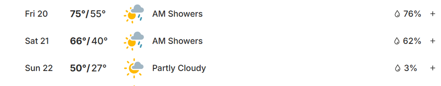 Sunday is the only day the luck could change. As of now, it shows a 3 percent chance of rain, but the rainy weather from Friday and Saturday could definitely have a stretched effect. The conditions may change during the week.