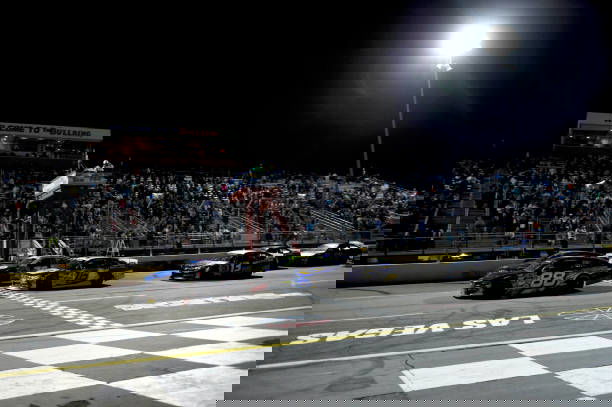 LAS VEGAS, NV – OCTOBER 13: Dylan Cappello (88) Ford Mustang leads the field across the starting line for the green/white/checkered finish during the ARCA Menards Series West Star Nursery 150 on October 13, 2023, at the Bullring at Las Vegas Motor Speedway in Las Vegas, NV. (Photo by Chris Williams/Icon Sportswire via Getty Images)