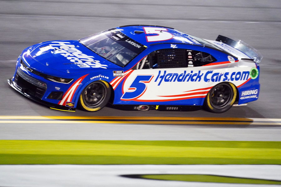 Feb 16, 2022; Daytona, FL, USA; NASCAR Cup Series driver Kyle Larson (5) during qualifying for the Daytona 500 at Daytona International Speedway. Mandatory Credit: John David Mercer-USA TODAY Sports