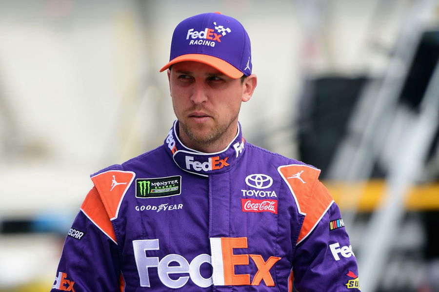 HAMPTON, GA – FEBRUARY 23: Denny Hamlin, driver of the #11 FedEx Ground Toyota, walks through the garage area during practice for the Monster Energy NASCAR Cup Series Folds of Honor QuikTrip 500 at Atlanta Motor Speedway on February 23, 2018 in Hampton, Georgia. (Photo by Jared C. Tilton/Getty Images)
