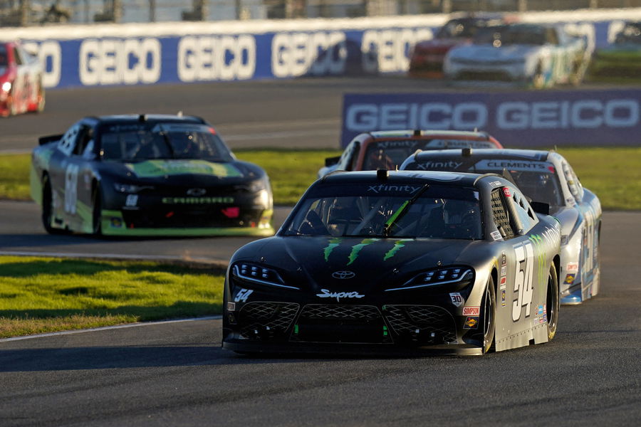 Daytona Beach, FL, USA; NASCAR Xfinity Series driver Ty Gibbs (54) races during the Super Start Batteries 188 at the Daytona International Speedway Road Course. Mandatory Credit: Jasen Vinlove-USA TODAY Sports