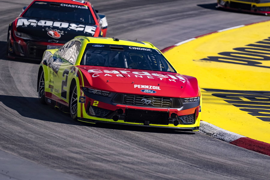 LOS ANGELES, CALIFORNIA – FEBRUARY 05: Austin Cindric, driver of the #2 eCascadia Ford, drives during qualifying for the NASCAR Cup Series Busch Light Clash at Los Angeles Memorial Coliseum on February 05, 2022 in Los Angeles, California. (Photo by Sean Gardner/Getty Images)
