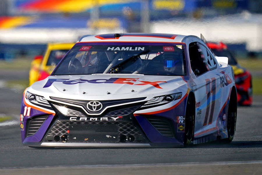 Feb 21, 2021; Daytona Beach, Florida, USA; NASCAR Cup Series driver Denny Hamlin (11) during the O’Reilly Auto Parts 253 at Daytona International Speedway. Mandatory Credit: Jasen Vinlove-USA TODAY Sports
