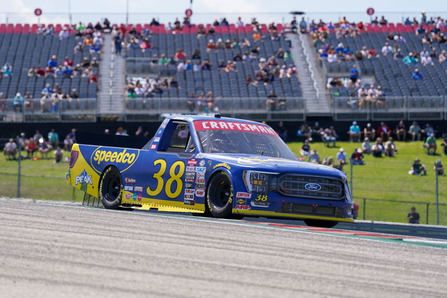NASCAR, Motorsport, USA Truck Series XPEL 225 Mar 25, 2023 Austin, Texas, USA NASCAR Craftsman Truck Series driver Zane Smith 38 comes out of the first turn at Circuit of the Americas. Austin Circuit of the Americas Texas USA, EDITORIAL USE ONLY PUBLICATIONxINxGERxSUIxAUTxONLY Copyright: xDanielxDunnx 20230325_neb_da8_118