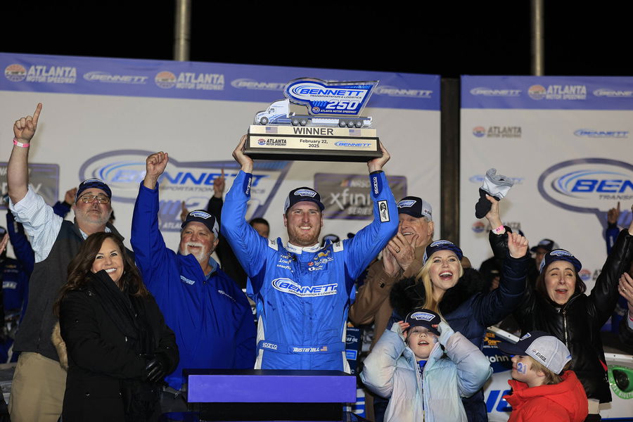 HAMPTON, GA – FEBRUARY 22: Austin Hill 21 Richard Childress Racing Bennett Transportation Chevrolet celebrates with the trophy in Victory Lane after winning the NASCAR, Motorsport, USA Xfinity Series Bennett Transportation and Logistics 250 race on February 22, 2025 at the Atlanta Motor Speedway in Hampton, Georgia. Photo by David J. Griffin/Icon Sportswire AUTO: FEB 22 NASCAR Xfinity Series Bennett Transportation and Logistics 250 EDITORIAL USE ONLY Icon953250222226