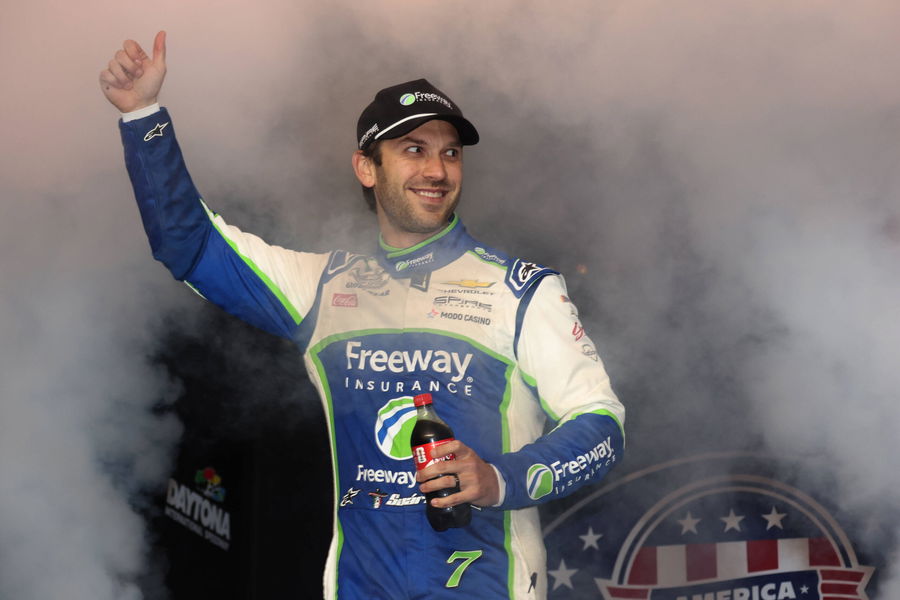 Then, much later in the race, Chastain began to run Suarez down as he struggled with the left-front tire on his #7 Chevrolet. The 33-year-old passed him on the outside with just over two laps remaining, and there was some very close racing as he went by. Chastain then appeared to give the Mexican driver the middle finger out the window as he drove away.