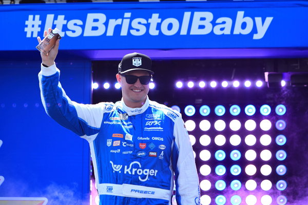 BRISTOL, TN – APRIL 12: Ryan Preece 60 RFK Racing Kroger/ Muscle Milk Ford walks out onto the pre-race stage prior to the running of the NASCAR, Motorsport, USA Cup Series Food City 500 on April 12, 2026 at Bristol Motor Speedway in Bristol, TN. Photo by Jeff Robinson/Icon Sportswire AUTO: APR 12 NASCAR Cup Series Food City 500 EDITORIAL USE ONLY Icon2604124020500