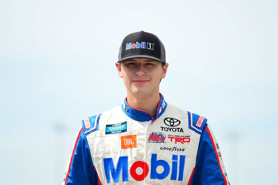 Madison, IL, JUNE 22: Todd Gilliland, driver of the #4 Mobil 1 Toyota, walks through the garage area during practice for the NASCAR Gander Outdoors Truck Series CarShield 200 presented by CK at Gateway Motorsports Park on June 22, 2019 in Madison, Illinois. (Photo by Jeff Curry/Getty Images)