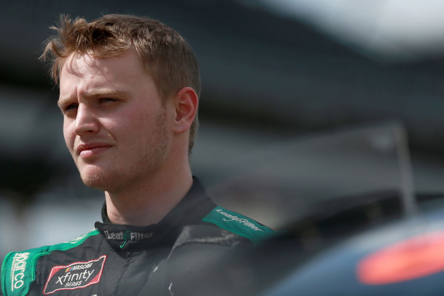 INDIANAPOLIS, INDIANA – AUGUST 14: Justin Haley, driver of the #11 LeafFilter Gutter Protection Chevrolet, waits on the grid prior to the NASCAR Xfinity Series Pennzoil 150 at the Brickyard at Indianapolis Motor Speedway on August 14, 2021 in Indianapolis, Indiana. (Photo by Sean Gardner/Getty Images)