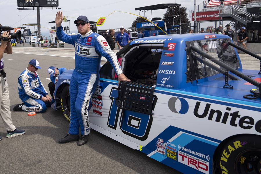WATKINS GLEN, NY – AUGUST 07: Camping World Truck Series driver Austin Hill of the #16 Hattori Racing Enterprises Toyota Tundra prior to the start of the United Rentals 176 at the Glen NASCAR Camping World Truck Series race on August 7, 2021, at Watkins Glen International in Watkins Glen, NY. (Photo by Gregory Fisher/Icon Sportswire via Getty Images)