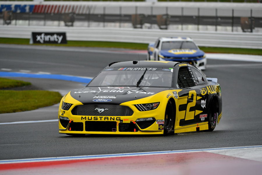 Sep 27, 2020; Las Vegas, Nevada, USA; NASCAR Cup Series driver Brad Keselowski (2) during the South Point 400 at Las Vegas Motor Speedway. Mandatory Credit: Gary A. Vasquez-USA TODAY Sports