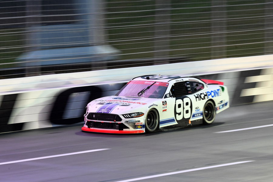 Oct 10, 2020; Concord, North Carolina, USA; NASCAR Xfinity Series driver Chase Briscoe (98) races during the Drive for the Cure 250 at Charlotte Motor Speedway. Mandatory Credit: Jasen Vinlove-USA TODAY Sports