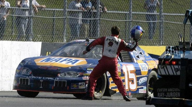 That time Robby Gordon threw his helmet at Michael Waltrip in New Hampshire … pic.twitter.com/RaviwzPDFs