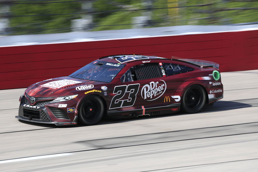 Jun 3, 2023; Madison, Illinois, USA; NASCAR Cup Series driver Bubba Wallace (23) looks on during practice and qualifying at World Wide Technology Raceway. Mandatory Credit: Joe Puetz-USA TODAY Sports