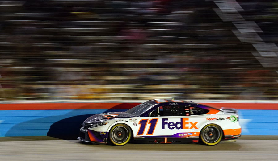 May 22, 2022; Fort Worth, Texas, USA; NASCAR Cup Series driver Denny Hamlin (11) races during the All-Star race at Texas Motor Speedway. Mandatory Credit: John David Mercer-USA TODAY Sports