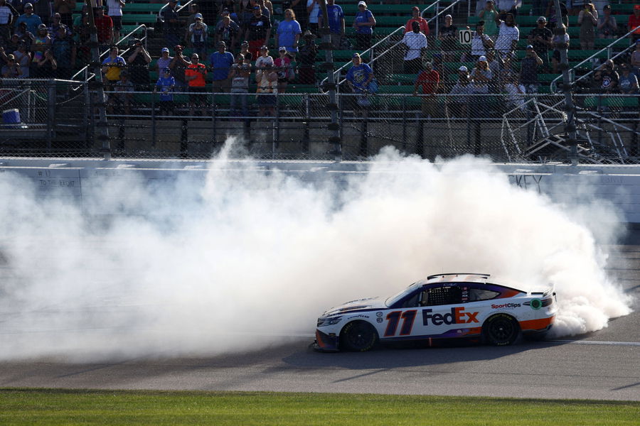 NASCAR, Motorsport, USA AdventHealth 400 May 7, 2023 Kansas City, Kansas, USA NASCAR Cup Series driver Denny Hamlin 11 reacts after winning the AdventHealth 400 at Kansas Speedway. Kansas City Kansas Speedway Kansas USA, EDITORIAL USE ONLY PUBLICATIONxINxGERxSUIxAUTxONLY Copyright: xMikexDinovox 20230507_mcd_ad4_57