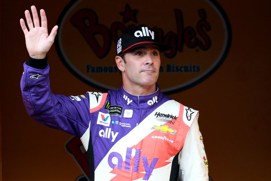 DARLINGTON, SOUTH CAROLINA – SEPTEMBER 01: Jimmie Johnson, driver of the #48 Ally Throwback Chevrolet, walks on stage during driver intros for the Monster Energy NASCAR Cup Series Bojangles’ Southern 500 at Darlington Raceway on September 01, 2019 in Darlington, South Carolina. (Photo by Sean Gardner/Getty Images)