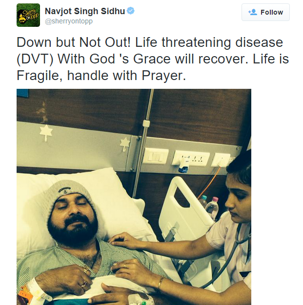 But a tiger at heart, Sidhu tweeted saying, “Down but Not Out! Life threatening disease (DVT) With God ‘s Grace will recover. Life is Fragile, handle with Prayer.” Surely, his fans will be praying for his speedy recovery and will be waiting for his extemporaneous one liners.