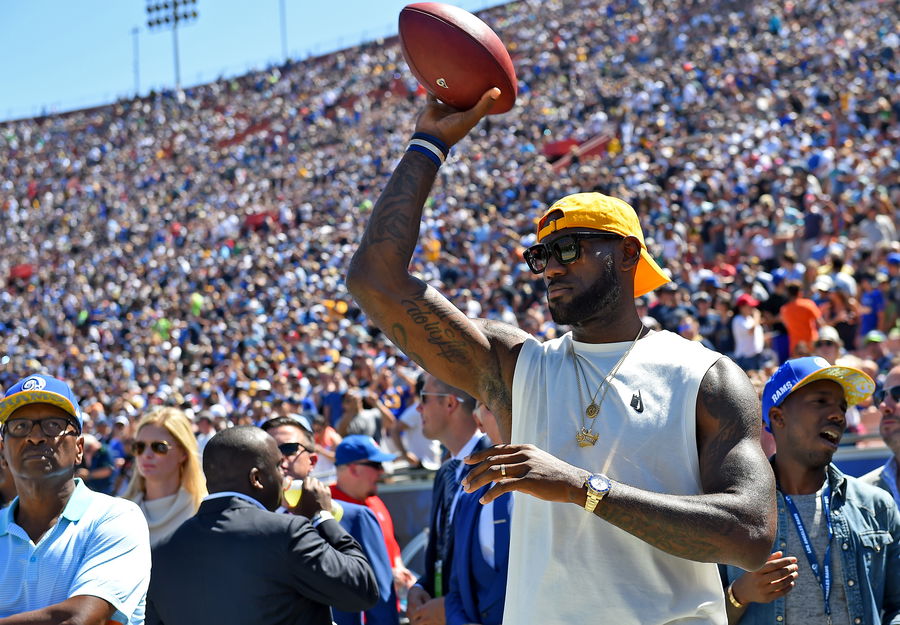 Sep 18, 2016; Los Angeles, CA, USA; Cleveland Cavaliers forward LeBron James on the sidelines before the game between the Los Angeles Rams and the Seattle Seahawks at Los Angeles Memorial Coliseum. Mandatory Credit: Jayne Kamin-Oncea-USA TODAY Sports