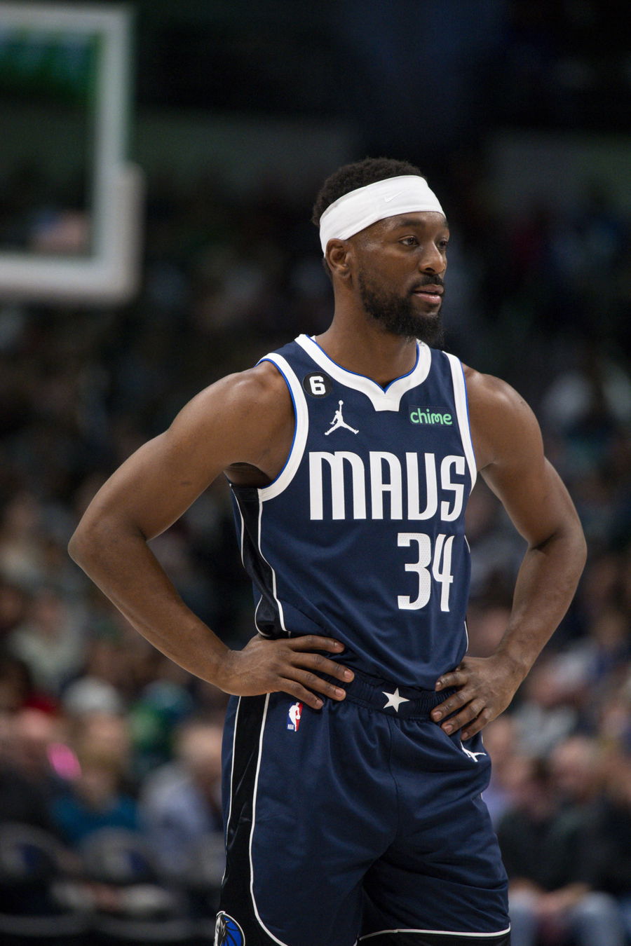 Dec 16, 2022; Dallas, Texas, USA; Dallas Mavericks guard Kemba Walker (34) enters the game against the Portland Trail Blazers during the second quarter at the American Airlines Center. Mandatory Credit: Jerome Miron-USA TODAY Sports