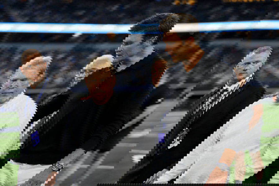 ARLINGTON, TX – AUGUST 26: Las Vegas Raiders owner Mark Davis walks off the field with former NFL, American Football Herren, USA quarterback Tom Brady before the preseason game between the Dallas Cowboys and the Las Vegas Raiders on August 26, 2023 at AT&T Stadium in Arlington, Texas. Photo by Matthew Pearce/Icon Sportswire NFL: AUG 26 Preseason – Raiders at Cowboys EDITORIAL USE ONLY Icon1692308261680