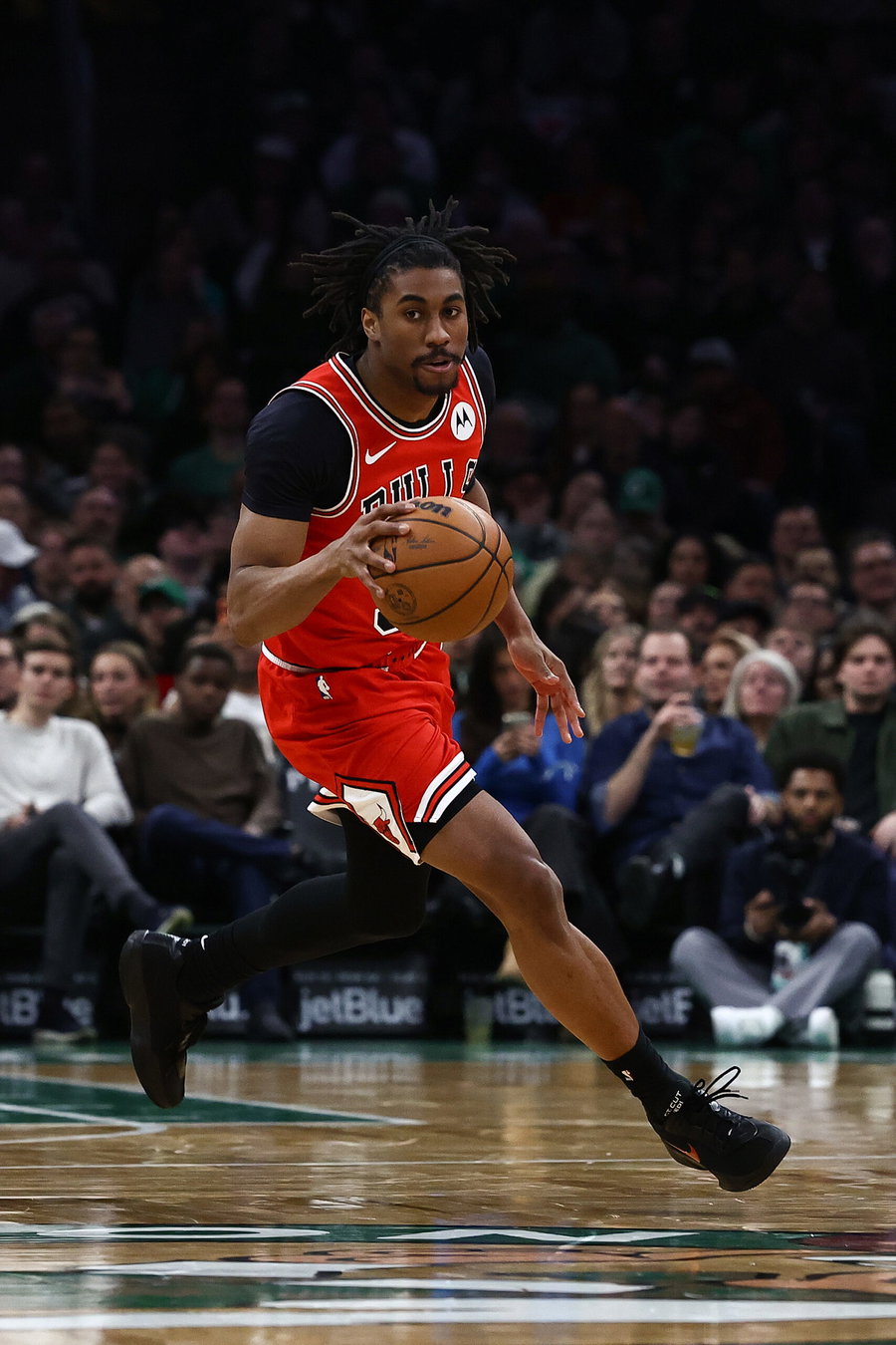 Feb 11, 2026; Boston, Massachusetts, USA; Chicago Bulls guard Jaden Ivey (31) brings the ball up the court against the Boston Celtics during the second half at TD Garden. Mandatory Credit: Winslow Townson-Imagn Images