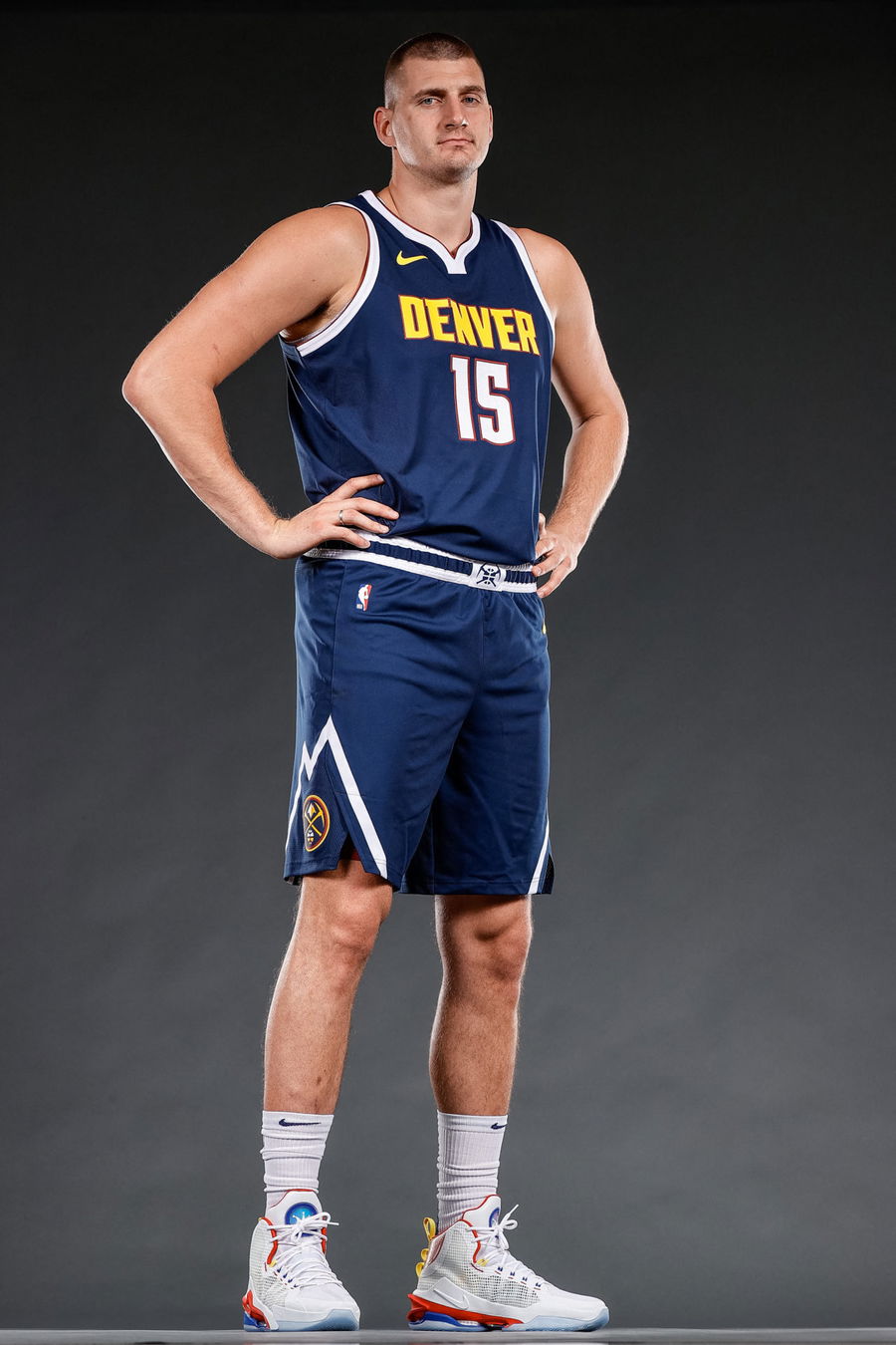 Oct 2, 2023; Denver, CO, USA; Denver Nuggets player Nikola Jokic (15) poses for a portrait during media day at Ball Arena. Mandatory Credit: Isaiah J. Downing-USA TODAY Sports