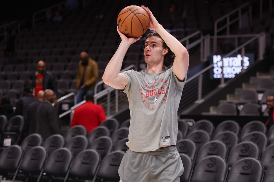 Dec 26, 2024; Atlanta, Georgia, USA; Chicago Bulls guard Josh Giddey (3) warms up before a game against the Atlanta Hawks at State Farm Arena. Mandatory Credit: Brett Davis-Imagn Images