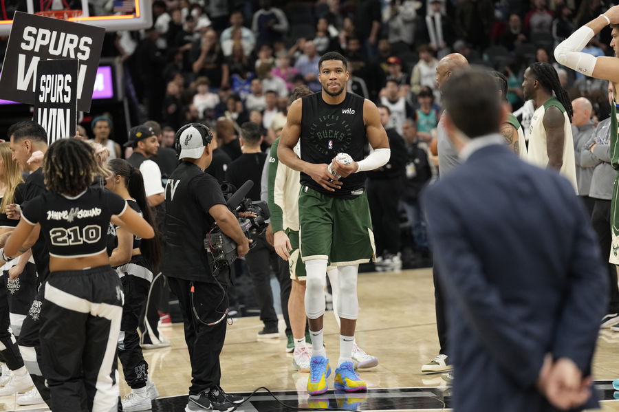Jan 31, 2025; San Antonio, Texas, USA; Milwaukee Bucks forward Giannis Antetokounmpo (34) walks off the court after a defeat against the San Antonio Spurs at Frost Bank Center. Mandatory Credit: Scott Wachter-Imagn Images