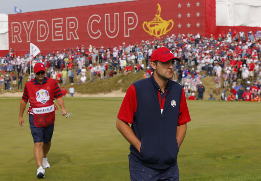 Golf – The 2020 Ryder Cup – Whistling Straits, Sheboygan, Wisconsin, U.S. – September 26, 2021 Team USA’s Scottie Scheffler walks off the 1st green during the Singles REUTERS/Brian Snyder
