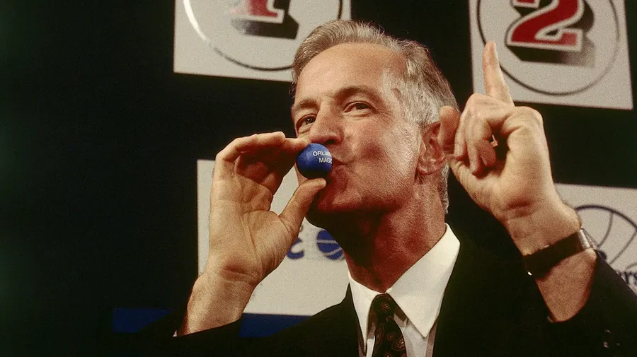 General Manager Pat Williams of the Orlando Magic receives the first selection in the 1993 NBA Draft by winning the draft lottery on May 23, 1993, in Secaucus, New Jersey. (Steve Freeman/NBAE via Getty Images)