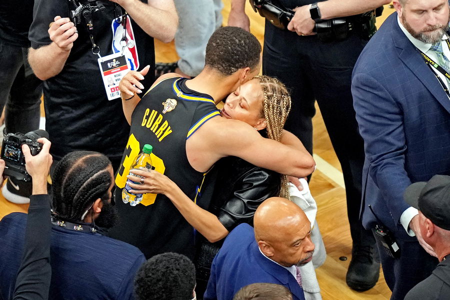 Jun 10, 2022; Boston, Massachusetts, USA; Golden State Warriors guard Stephen Curry (30) celebrates with his mother Sonya Curry after beating the Boston Celtics during game four of the 2022 NBA Finals at TD Garden. Mandatory Credit: Kyle Terada-USA TODAY Sports