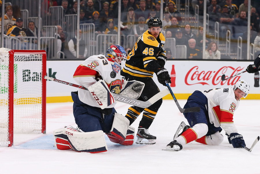 November 12, 2019; Boston, MA, USA; Florida Panthers goaltender Sam Montembeault (33) makes a save during the NHL, Eishockey Herren, USA hockey game between Florida Panthers and Boston Bruins at TD Garden. /CSM NHL 2019: Panthers vs Bruins NOV 12 – ZUMAc04_ 20191112_zaf_c04_409 Copyright: xAnthonyxNesmithx