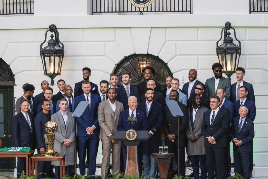 It was Jaylen Brown who stole the show. While President Biden was delivering the speech, Brown did something that caught the attention of people. President Biden was saying, “Red Auerbach said that the Celtics aren’t just a basketball team, they’re a way of life,” while people were applauding, Jay was uncontrably smirking throughout these lines. He could also be seen shaking his head while trying to not laugh.