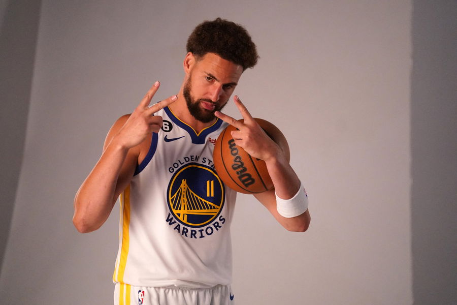 Sep 25, 2022; San Francisco, CA, USA; Golden State Warriors guard Klay Thompson (11) during Media Day at the Chase Center. Mandatory Credit: Cary Edmondson-USA TODAY Sports