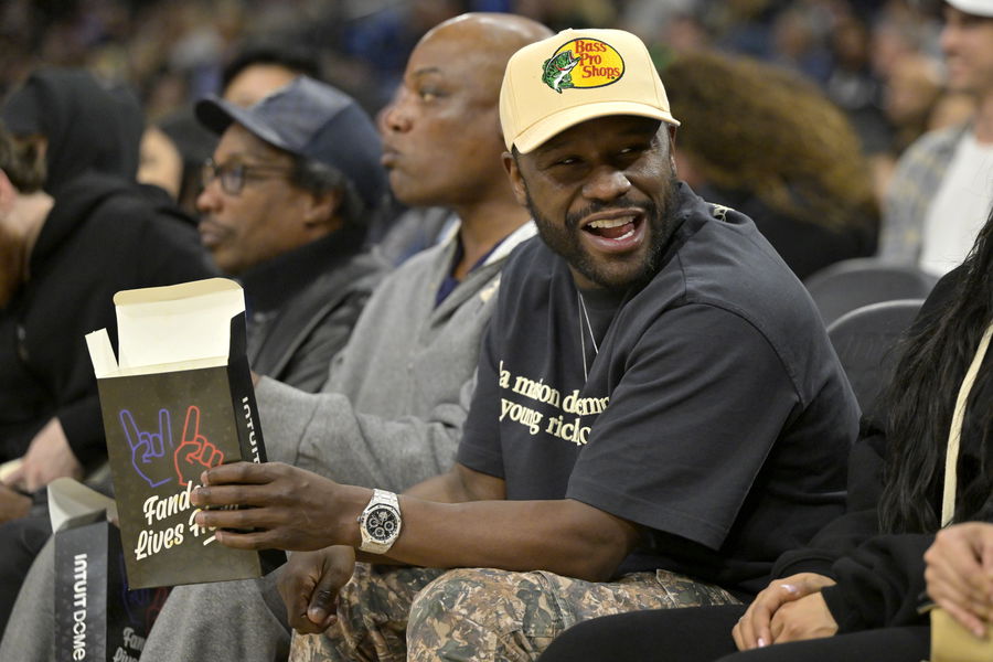 Dec 27, 2024; Inglewood, California, USA; Former boxer Floyd Mayweather, Jr. attends the game between the Los Angeles Clippers and the Golden State Warriors at Intuit Dome. Mandatory Credit: Jayne Kamin-Oncea-Imagn Images